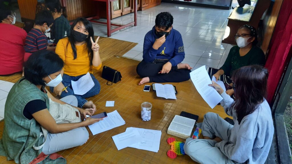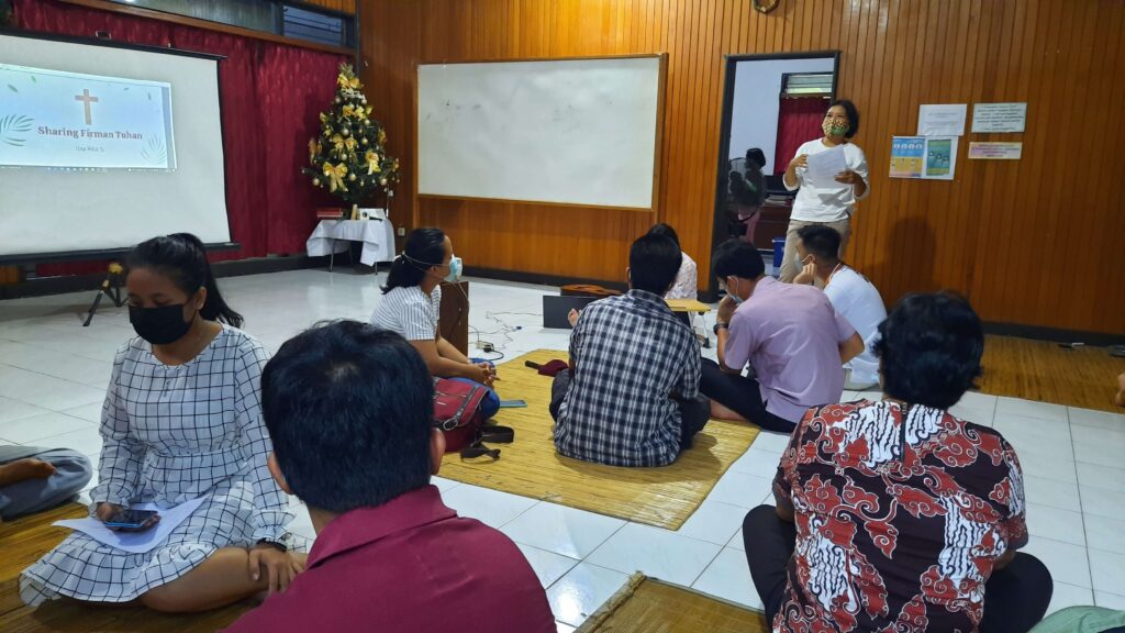 Para alumni dibagi menjadi beberapa kelompok, dan bersama-sama menggali bacaan firman tentang angin ribut yang diredakan oleh Tuhan Yesus. Setelah setiap kelompok membagikan apa yang didapat dari penggalian Alkitab, Ibu Rita menyimpulkan bahwa dalam setiap kondisi kita perlu untuk diam dan tenang serta mengandalkan Tuhan.
